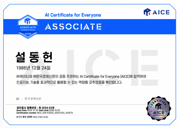 - 🧠 AICE Associate (국가공인 AI 자격증)